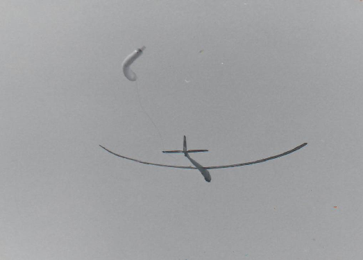 It took him a while to get interested in thermal soaring at Hourglass but the Hobie filled both thermal and slope roles quite well. In the morning he would thermal at Hourglass, and then when the winds came up he’d drive to Torrey in his convertible Cadillac for the rest of the afternoon (this was a common strategy for many in the club, except for the Cadillac). At the time, most thermal contestants covered their planes with a dark underside on the wings for improved visibility. However, eventually someone would invariably mistake someone else’s plane for theirs in the sky – leading to a catastrophe. To avoid that confusion, Frank covered his Hobies in a unique transparent rainbow pattern. In addition, the Hobie’ elliptical wing made it difficult to monokote with one sheet and Frank figured that by dividing the curve into squares of different colors it would make it easier to cover. Lastly, Frank observed that depending on the angle of the sun, the clouds, etc. that one or another color of the rainbow would “pop” and be more observable than the rest and if he had all colors on the wing, he’d cover his bases!
