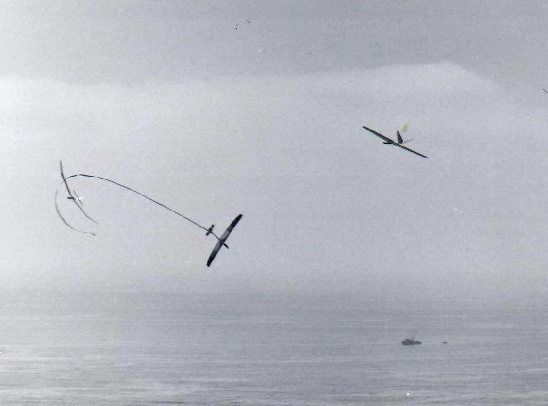 Frank made flying fun for everyone around him. At Torrey, one day he wondered what it would be like to fly with a paper streamer behind the Hobie, simply to show the path of the plane for aerobatics. It turned out to be too good of an idea. Upon seeing the streamer, other pilots wondered if they could cut the streamer off the tail of the Hobie. Thus, “Hobie combat” was born. Hobie combat became a fun but expensive adventure, as multiple times people ended up mid-airing with the Hobie instead of the streamer. But eventually “rules” were generated where whomever caught the streamer from the Hobie would then become the next target, unless they could safely land with the streamer on the top of the cliff. Super Cheetahs were really good for this mission as their hard duralene fuselage would take considerable abuse - far more so than a Hobie.