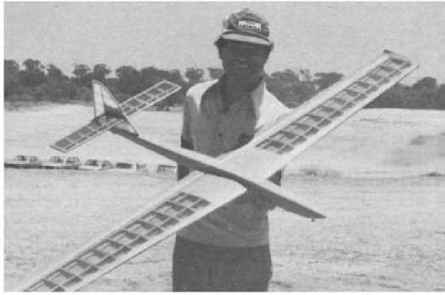 In 1979 the TPG hosted a contest that was one part thermal (in the morning), one part slope (that same afternoon). For this particular contest, the same aircraft had to be flown in both parts by the same pilot! Quite a challenge. Menard set off to design a model specific to meet the challenge. The resulting plane had ailerons like most slopers but was built incredibly light. And the design also included the opportunity for plenty of ballast for the slope if the wind allowed. The 74” span, 10” chord provided lots of lift, and (as was the case with John) he used his own special Menard 202 airfoil (a modified Eppler 202) for the aircraft.